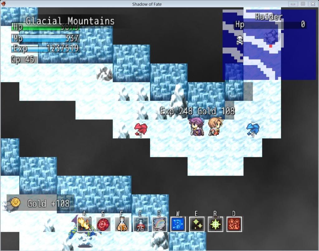 Shadow of Fate is a 2D RMVXA game which utilizes Falcao’s Pearl Active Battle System. Falcao’s Pearl Active Battle System features a real-time hack-n-slash on-the-map battle system. Enjoy the game through navigating the vast world of Mercanova, through the continents, mountains, dungeons, forests, above the skies and even underwater! Gather and use alchemy to fuse items, fight monsters and most of all, watch the story unfold! Some of this game’s unique elements include the battle system-with minimap itself as well as the awesome animations and skills.